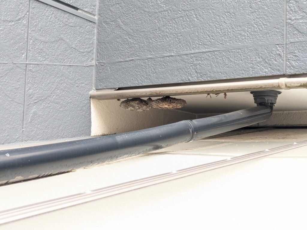 お客様も去年に蜂の巣を作られていたことに全く気づいておらず複数箇所もあったことにびっくりされていましたが、意外と人間の生活圏に巣があっても気づかれないケースも多いです。